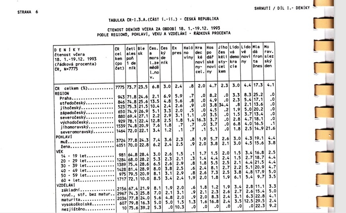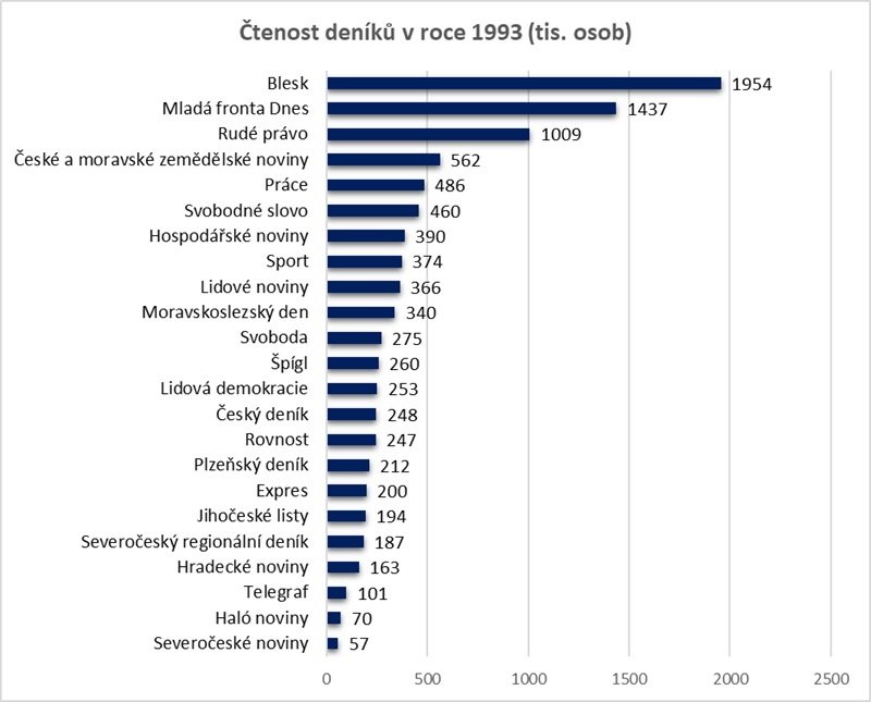 Výsledky čtenosti téměř třiceti deníků, mezi nimi například dnes už neexistujících Českého deníku, Českého Expresu, Haló novin, Jihočeské pravdy, Špíglu, Rudého práva nebo Telegrafu, mapoval už od začátku 90. let průzkum čtenosti dnes známý pod názvem Media projekt. Na začátku letošního února si připomněl 30. výročí, stejně jako TV Nova svůj vstup na mediální trh datuje 4. únorem 1994.
