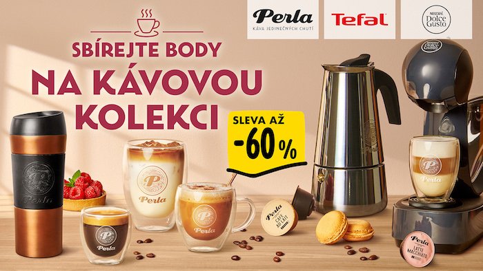 V nabídce sběratelské kampaně jsou nejen dvoustěnné skleněné hrnky, ale i termohrnky, lžičky či dóza s logem kávy Perla, dále frenchpress či mocca konvice. „Pro ty, kteří mají raději kapslovou kávu, jsme přichystali kávovar Dolce Gusto. V nabídce nechybí ani varná konvice značky Tefal,“ dodává Anelt. Produkty jsou k dostání ve všech hypermarketech a supermarketech Albert, a to se slevou až 60 %.