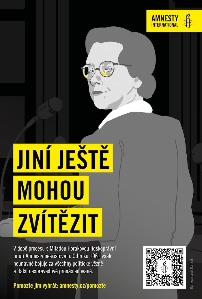 Amnesty International se rozhodla podpořit povědomí své značky. V televizi, kině a outdooru spouští od června brandovou kampaň „Jiní ještě mohou zvítězit“, na které poprvé spolupracovala se svým novým bono partnerem agenturou Triad. Nejvýraznějším vizuálním prvkem kampaně jsou portréty Milady Horákové, které pochází z dílny absolventů Ateliéru didaktické ilustrace plzeňské Sutnarky.