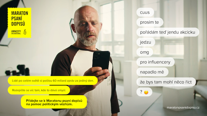 Amnesty International i letos spustila lidskoprávní kampaň „Maraton psaní dopisů“. Vyzývá v ní veřejnost, aby namísto zbytečných zpráv napsali dopis, který může zachránit lidský život. Tvářemi kampaně jsou Ester Geislerová, Hynek Čermák a Jan Lukačevič.