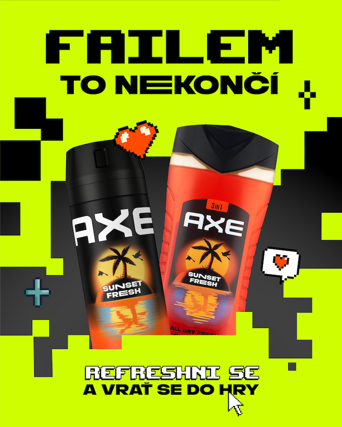 Axe spouští na českém a slovenském trhu novou letní kampaň, jež se inspiruje retro estetikou pixelových videoher. Neúspěch označuje za „dobrou“ věc, protože ať se stane cokoliv, stačí se osvěžit Axe a zkusit to znovu, slovy gamerů tzv. respawnout se.