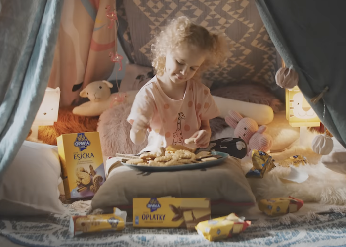 Opavii reprezentují její symboly, v tomto případě produkty, které jsou nedílnou součástí děje, nejen naaranžovanou rekvizitou v pozadí. A co víc, šikovně se zjevují v momentech, kdy jsou diváci nejvíc zaujatí. První prolnutí vrcholků křivek nastane v momentě, kdy holčičku napadne servírovat svačinu, druhé přichází na konci u mlsající rodinky. Jak tvůrci jistě vědí, dobrá emoce funguje jako zesilovač a díky ní si diváci lépe zapamatují hlavní sdělení.