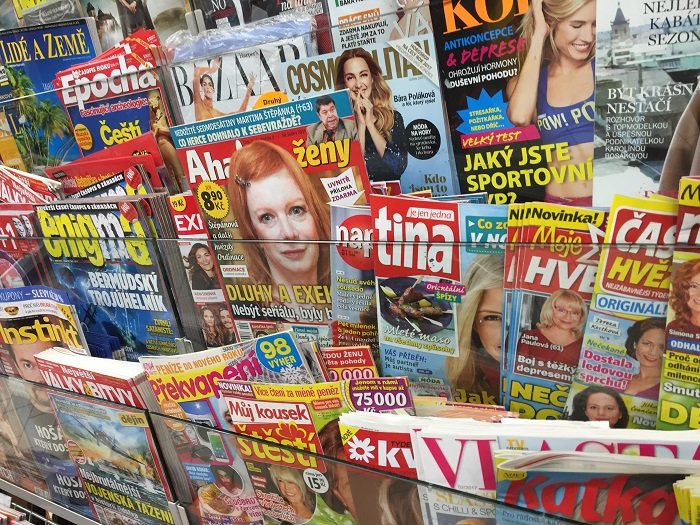 časopisy s televizními přehledy, dále časopisy pro ženy a tituly