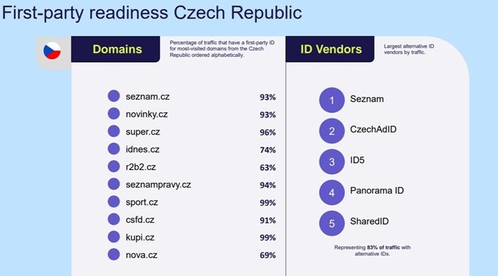 Různé typy identifikátorů, která se na trhu objevují, mohou komplikovat orientaci v tom, jaká data skrývají. Řešení Adformu, které společnost vyvíjí v posledních pěti letech, v současnosti podporuje na 40 identifikátorů v českém onlinu. Jsou mezi nimi i identifikátory od Seznam.cz (Seznam ID) nebo Czech Ad ID (identifikátory sdružení českých provozovatelů internetu CPEx). Právě Seznam.cz ze svých serverů novinky.cz nebo super.cz odesílá vysoký podíl dat prvních stran – více než 90 %. Klienti zároveň mohou využít řešení Adformu ID Fusion, které je vytvořeno pro práci v prostředí bez cookies napříč doménami, prohlížeči a zařízeními uživatele a které lze využít pro cílenou reklamu. „S využitím DSP od Adformu je možné na českém trhu obsáhnout 39% traffic bez cookies, což potvrzuje, že technologicky je trh připraven,“ uvedl Andreas Sierts s tím, že vedle optimalizace kampaní to platí i pro retargeting.