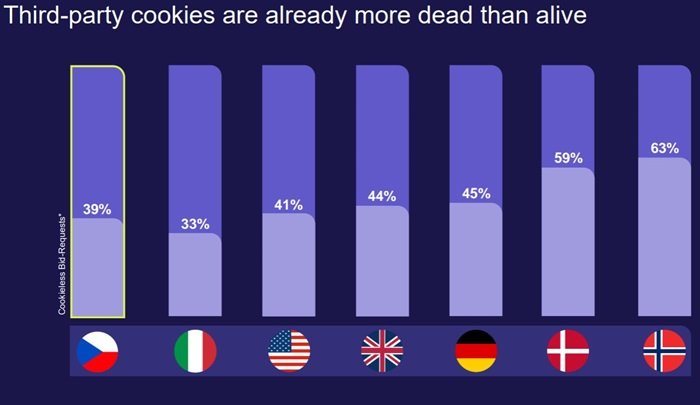 Z dat sledujících podíl „bid-requests" bez cookies, která na setkání prezentoval, vyplynulo, že v některých evropských zemích už převažuje „provoz bez cookies“. Podle dat prezentovaných na letošním Adform Summitu to platí pro severské země Norsko (63 %) a Dánsko (59 %), k polovičnímu podílu bez cookies provozu se blíží Německo (45 %), ale ani Česko není s podílem 39 % západoevropskému průměru tolik vzdálené.