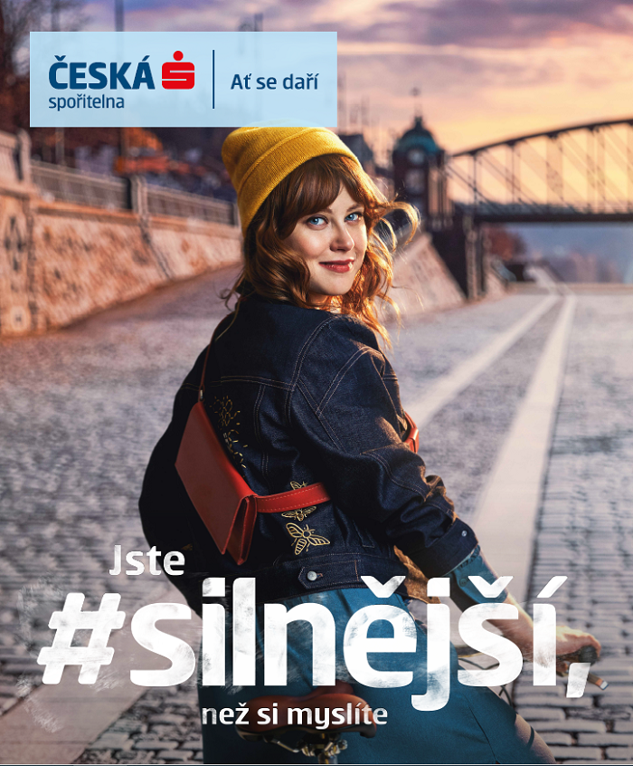 V nové kampani komunikačního konceptu #silnější, který Česká spořitelna odstartovala loni na jaře, vypráví banka svůj příběh. Mluví o provázanosti svého působení s rozvojem prosperující společnosti v Česku a připomíná první vkladní knížky, podporu průmyslu i stavbu Rudolfina. Hlavní tváří nové kampaně je herečka Jenovéfa Boková. Kampaň poběží až do dubna nejen v televizi, ale také v rámci outdoor a on-line médií a na sociálních sítích, zejména na Facebooku ve formátu Cinemagraphs a Instagram Reels a Stories.