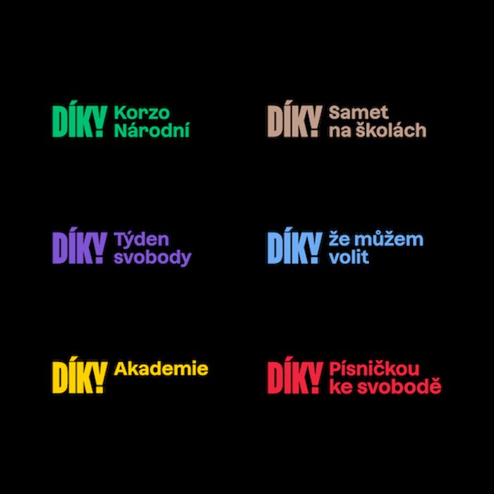 Spolek Díky, že můžem, jenž během jedenácti let své existence přidal k oslavám 17. listopadu Korzo Národní na Národní třídě škálu celoročních projektů, má novou vizuální identitu. Jejím autorem je Studio Najbrt, jehož úkolem bylo sjednotit všechny aktivity spolku do uceleného vizuálního stylu. Nový koncept je inspirován samotnými událostmi roku 1989 a odráží hlas mladé generace.