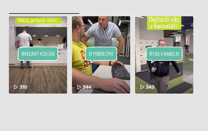 První videa ukazují různé příběhy z kanceláří. „Vše je samozřejmě hodně nadnesené, vyhnané do extrému a tak trochu parodie. Neznamená to, že takto v Directu skutečně fungujeme,“ upozorňuje Maťašeje.