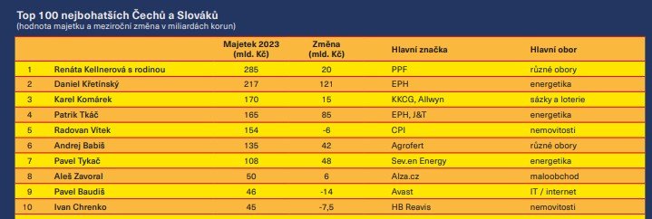 # Daniel Křetínský # Euro # vlastník # Karel Komárek # Renáta Kellnerová # žebříček miliardářů
