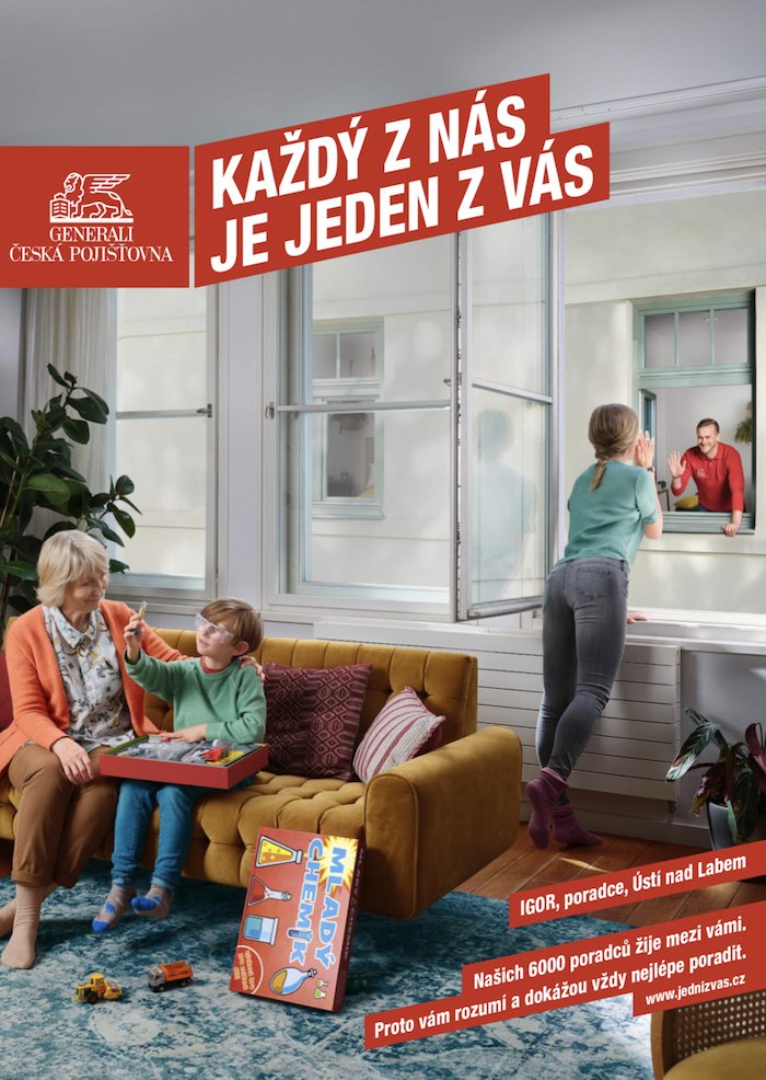Cílem kampaně je poukázat na širokou síť poradců, kterých má Generali Česká pojišťovna šest tisíc. Kontaktovat je tak podle společnosti není těžší než „prostě zavolat na souseda“.