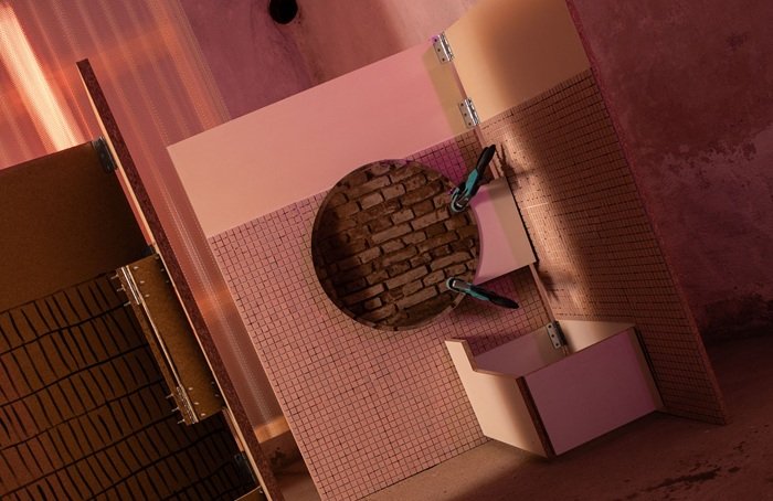 Instalace návštěvníky vtáhne do prostředí koupelny v rekonstrukci, kde mohou sami rozpohybovat scénografii prostřednictvím šlapání pedálů. Tím se spustí mechanický stroj v podobě nadživotní pop-up knihy, která vypráví příběh tvůrčích kroků i nečekaných komplikací. Součástí expozice je také reinterpretace ikonického křesla Charlese a Ray Eamesových, vyrobená z běžně dostupných materiálů.