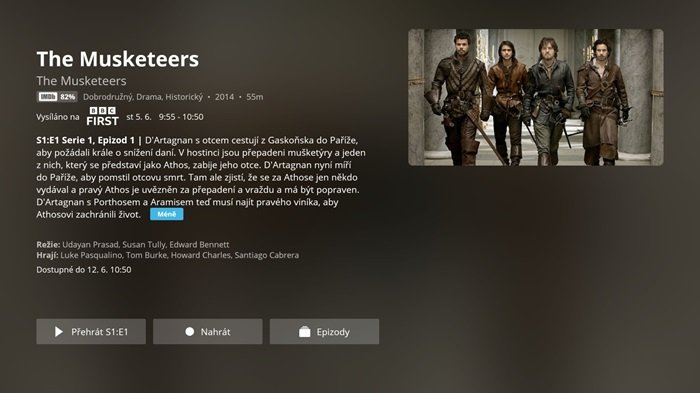 Po kliknutí na dlaždici BBC First se podle očekávání otvírá samotná knihovna titulů. Pro zákazníky O2 TV je obsah BBC Studios zabalený do atraktivnější formy – vždy sedm dlaždic po několika řádcích. Každý titul je opatřen hned v úvodním náhledu grafikou, hodnocením dle iMDB, samotným názvem a číslem epizody. Detailnější informace lze opět získat po kliknutí na jednotlivé dlaždice. BBC First je prezentovaný jako prémiový kanál, je proto škoda, že i v tomto případě je stanice v nabídce operátora k dispozici pouze ve standardním rozlišení.