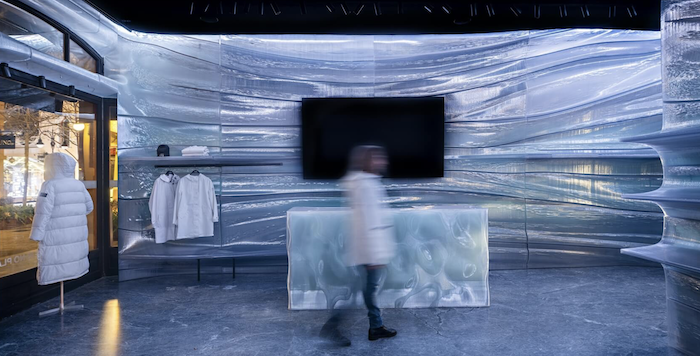 V dnešní době je důležitý také udržitelný rozměr prodejny, kterým značkám vyjadřuje své etické postoje i environmentální zodpovědnost. Učinila tak třeba značka Ecoalf ve své madridské prodejně, v níž vsadila na recyklované materiály.