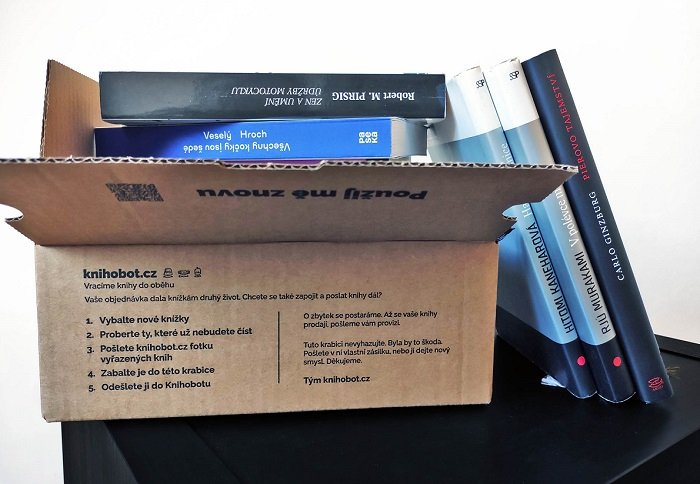 Online antikvariát Knihobot přichází se zjednodušením pro cirkulaci knih. Pro tyto účely představil na míru vyrobené odkládací krabice. Jsou z recyklované lepenky s rozměry navrženými tak, aby se vešly do běžné knihovny. Vejde se do nich 4 až 12 knih. Krabice ochrání knížky při přepravě kurýrním autem a v ideálním případě by měla dokázat absolvovat i několik cyklů.