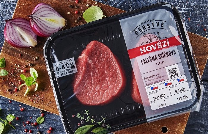 „Informace o mase jsou tištěné na poloprůhledné fólii, takže i v tomto místě je na něj dobře vidět. Díky třem vlajkám na obalu je také ihned zřejmý původ masa, místo porážky i balení. Kdo má zájem dozvědět se více informací o mase nebo se inspirovat zajímavými recepty, může využít novinku na obalu – QR kód. Odkáže zákazníky na mobilní web, kde získají řadu tipů, jak maso skladovat nebo jak ho použít v kuchyni. A to včetně konkrétních receptů,“ dodává Adámková.