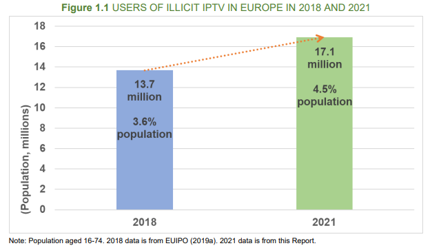 Čísla jsou to alarmující, protože jde o uživatele všech věkových skupiny, tedy v rozmezí 16 až 74 let. Vůbec nejpočetnější skupinou je netflixovská generace 16 až 24 let. Jen těch je z celého počtu 5,9 milionu. Jen pro představu, to je počet obyvatel Finska. K obsahu se dostávají prostřednictvím ilegálních IPTV služeb. Ty si takto přišly na 1,06 miliardy eur.