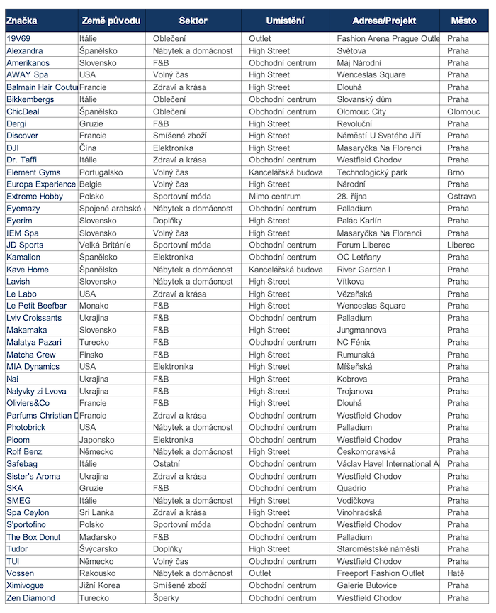 „Zatímco dříve převážná část značek nově vstupujících na český trh přicházela ze západních zemí, nyní vidíme jasný trend, kdy nově vstupující značky jsou z velké části z východu, a to zejména z Ukrajiny, Polska, Slovenska či Turecka. Značky, které jsou na svých domácích trzích velmi silné, často volí Česko jako jednu z prvních zemí při expanzi do západní Evropy. Česko má tak na evropském trhu unikátní pozici, kdy si jej západní značky volí jako vstupní bránu pro expanzi na východ a značky z východu pro expanzi na západ,“ popisuje nový trend Jan Kotrbáček ze společnosti Cushman & Wakefield.