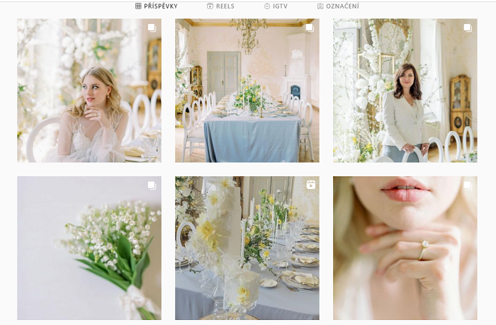 Na Instagramu tak komunikuje prostřednictvím příspěvků na profilu (fotografie i videa), využívá také formátů Reals a Instagram Stories (k uživatelům promlouvá přímo majitelka butiku) a carouselů. Reportáže ve stories má sledovat 2,5 tisíce lidí, což je polovina z celkového počtu sledujících.