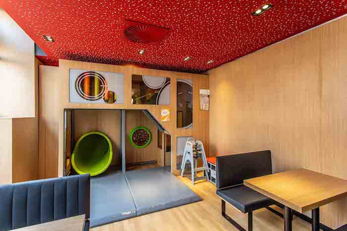 V interiéru bude umístěno pět samoobslužných objednávkových kiosků a k dispozici budou rovněž dvě tradiční pokladny. Restaurace bude vybavena kavárnou McCafé, pro děti je připraven herní koutek vyrobený převážně ze dřeva, které pochází z certifikovaných udržitelných lesů.