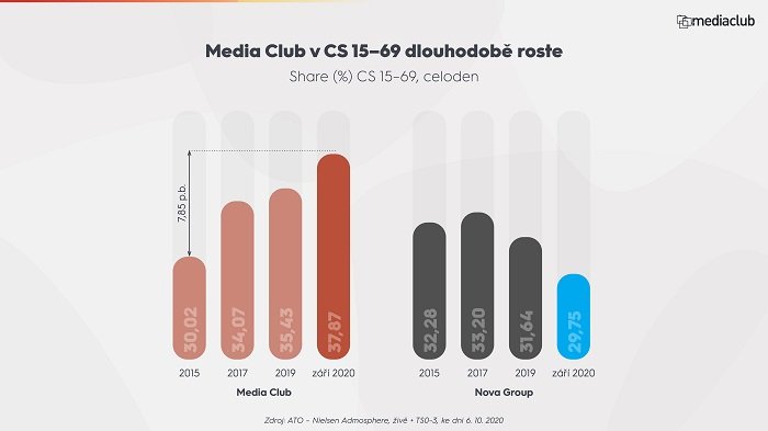 Media Club zvýší pro rok 2021 základní cenu reklamy CPP o pět až deset procent v závislosti na velikosti objemu, který klient objednává. Prodejní cílovou skupinou je nadále 15-69 a beze změny zůstává rozdělení dne na prime time (17.30–23.30) a off prime time (23.30–17.30). Od ledna Media Club upravuje poměr kanálů v balíčcích Exclusive i Total podle aktuální sledovanosti TV stanic (viz tabulky níže). Media Club i nadále zastupuje hudební stanice skupiny Óčko, kanály skupiny Barrandov, komediální stanici Prima Comedy Central, dětský kanál Nickeloden a Nick Jr. a kanály zastupované Atmedia Czech.