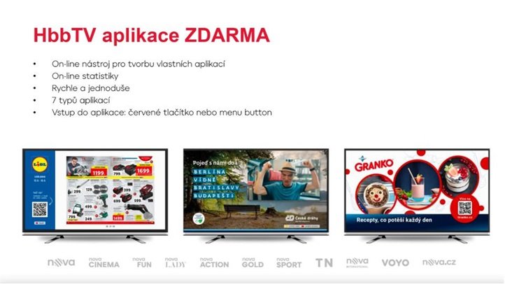 Reklamní kampaně v HbbTV prostředí kombinují možnosti lineární televizní kampaně s výhodou okamžité reakce diváka pomocí zpětného kanálu využívajícího online připojení. Kampaně tak mohou mít podobu televizní hry řízené dálkovým ovládáním nebo třeba kvízových či sázkových her v reálném čase. Cenově začínají kampaně v HbbTV prostředí kolem sta tisíc korun a stálým klientům nabízí televize pochopitelně různé bonusy, třeba i zapojení do živého vysílání.