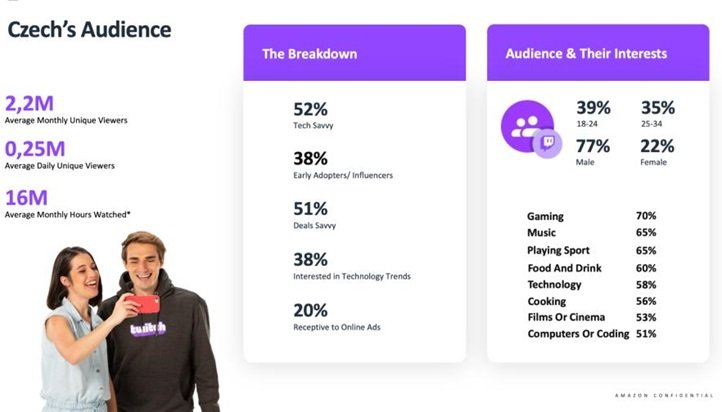 Původně platforma pro streamování herních videí Twitch už ale dnes nabízí i řadu jiných, více či méně zajímavých typů obsahu. Pokud tedy máte solventního klienta, jehož produkt se na Twitch hodí, určitě neváhejte. Reklamu na Twitchi lze nakupovat formou aukce i napřímo. Ze začátku jsme s přímými nákupy docela bojovali, ale dnes už máme s obchodníky z Twitche vynikající vztahy. Můžete si to vyzkoušet sami nebo vám samozřejmě rádi pomůžeme.