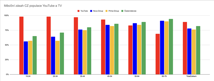 Z dlouhodobého průzkumu, který každý rok zveřejňuje společnost Kantar, vyšla letos vůbec poprvé jako nejdůvěryhodnější platforma pro marketéry YouTube, do něhož se zadavatelé chystají alokovat největší naplánované množství reklamních investic. Přestože je možné, že se reklama na YouTube bude dále zdražovat, jedná se podle mě o nenahraditelný kanál. Navíc ve věkové skupině diváků od patnácti do 54 let je YouTube sledovanější než klasická televize, jejich vzájemný poměr se láme až u starších věkových skupin, ale ani zde není rozdíl v počtu diváků nijak výrazný.