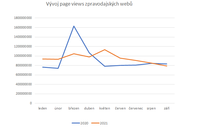 Počet návštěv a zhlédnutých stránek na zpravodajských webech byl za