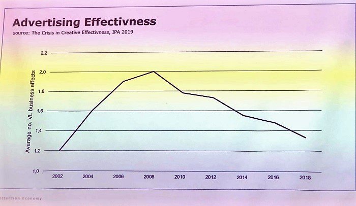 Jiný přístup k ocenění mediálního prostoru se snaží prosadit agentura Dentsu Aegis, řekl posluchačům Michal Majnuš. Staví ho na ekonomii pozornosti a věří, že pozornost se může stát novou obchodní veličinou. Je zároveň přesvědčen, že stávající nakupování na základě zobrazení a reache nezaručí to, že zákazník věnuje reklamnímu sdělení vůbec nějakou pozornost.