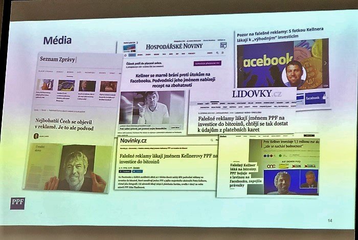 Vedoucí komunikace PPF Radim Ochvat shrnul zkušenost této významné investiční skupiny s bojem proti podvodníkům na Facebooku. Jak na úvod předeslal, PPF byla dlouho ve využívání sociálních sítí konzervativní, postupně vstoupila na LinkedIn a Twitter, na Facebooku ale nekomunikuje. Právě na této sociální síti musela PPF loni čelit podvodným reklamám, ve kterých se objevoval portrét majitele skupiny Petra Kellnera. Boj proti tomu byl ale zpočátku neúspěšný, trvalo několik týdnů (8-10), než Facebook začal příslušné stránky mazat. Google, kde se tyto reklamy také objevily, reagoval podle Ochvata mnohem rychleji. Nakonec Facebook smazal asi sto podvodných reklam. „Bránit se tomu nebyl snadný úkol ani pro nás, natož pro menší podnikatele,“ shrnul Ochvat zkušenost PPF na Facebooku.