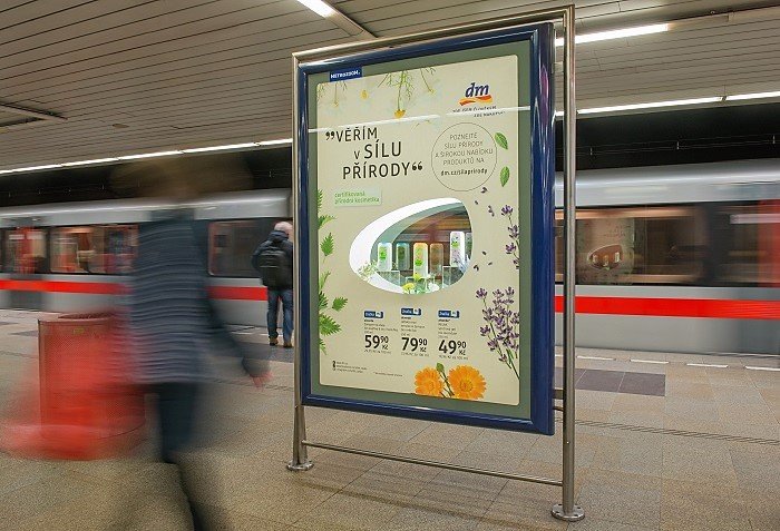 V šesti stanicích pražského metra se citylighty společnosti MetroZoom proměnily na výlohy dm drogerie. Cestující v nich nyní mohou vidět produkty privátní značky alverde, doplněné o byliny, které tyto produkty obsahují.