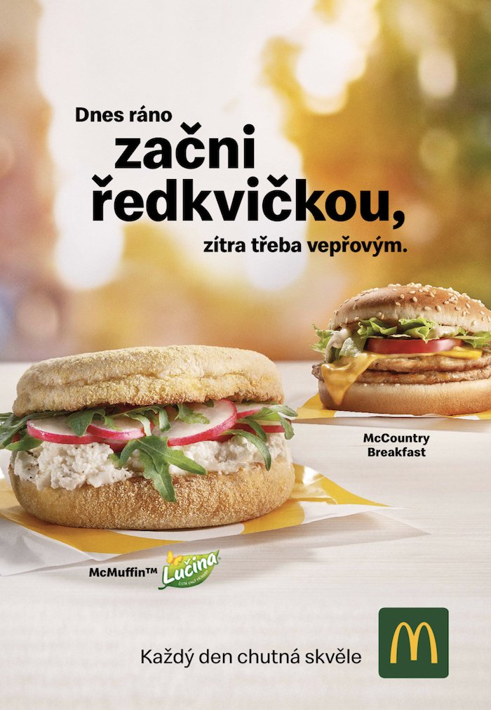 Lučina, ředkvičky a rukola, to vše podávané ve slaném muffinu, pod názvem McMuffin Lučina. To je novinka ze snídaňového menu, kterou McDonald’s přidal nedávno do své nabídky. Nezvyklý produkt ve fast foodu, který se po dlouhá desetiletí zaměřuje především na hovězí burgery, jen ukazuje proměnu zákaznických preferencí. Lidé mají totiž větší zájem o zdravější stravování, bez masa a pokud možno z lokálních surovin.