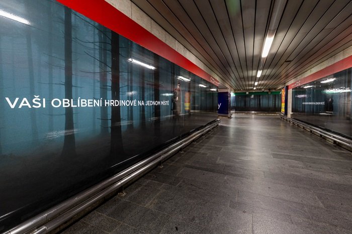 Součástí první fáze kampaně byl i brandový polep přestupního tunelu mezi trasami A a C ve stanici metra Muzeum. Celý přestup metra se proměnil v atmosférický les inspirovaný prostředím Oneplay originálu Král Šumavy.
