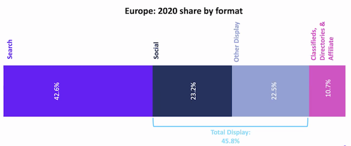 Z jednotlivých formátů jsou stále nejsilnější vyhledávání a display reklama, jejichž podíl je v zásadě vyrovnaný. Také jejich loňský meziroční růst byl obdobný (display: + 9 %, search: + 8 %). Nejrychlejší růst vykázaly v pandemii formáty na sociálních sítích, které si připsaly meziroční nárůst o 16 %, rostlo především video na sociálních sítích (+21 %). Podíl sociálních médií v rámci display reklamy představuje zhruba polovinu (23 %).