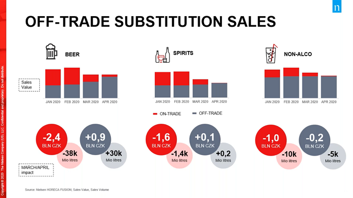 Zatímco u některých kategoriích, například u piva, kompenzoval výpadek v HORECA částečně nárůst prodejů v retailu, u tvrdého alkoholu a nealkoholických nápojů se tomu tak nestalo.