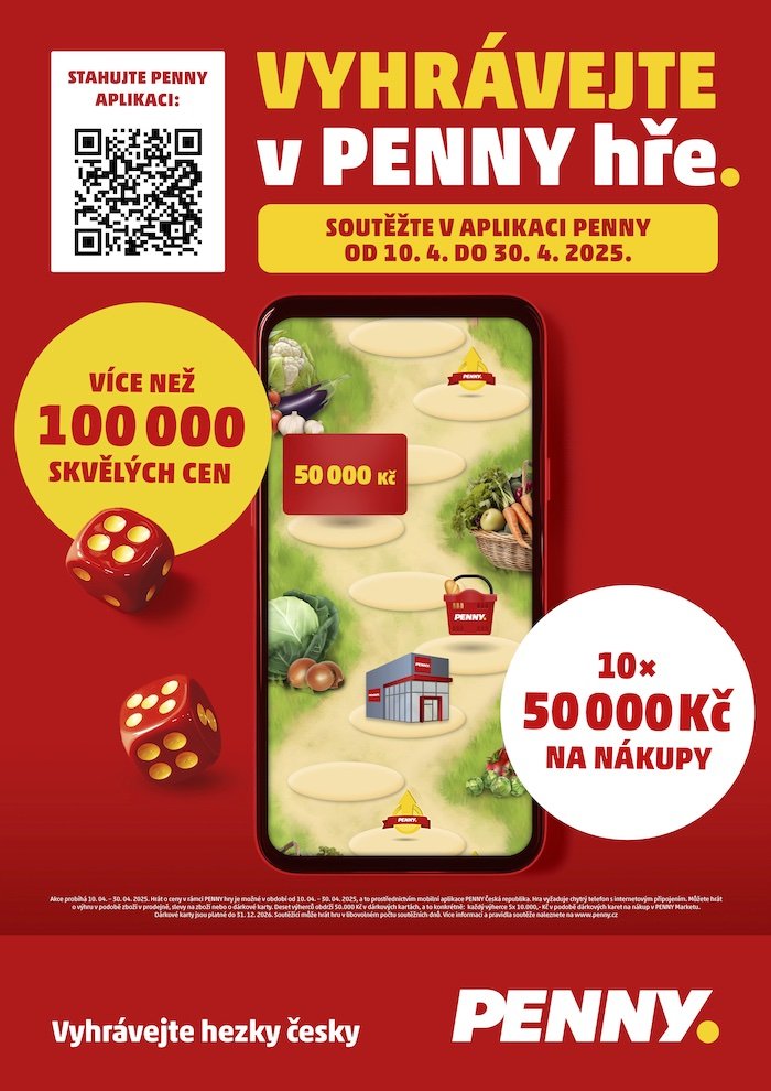 Penny přichází s dalším ročníkem soutěže Penny hra, která startuje 10. dubna a potrvá až do 30. dubna. Přináší více než 100 tisíc výher, mezi nimiž nechybí ani dárkové karty na nákup v celkové hodnotě půl milionu korun. Možné je se zapojit prostřednictvím mobilní aplikace Penny Česká republika.