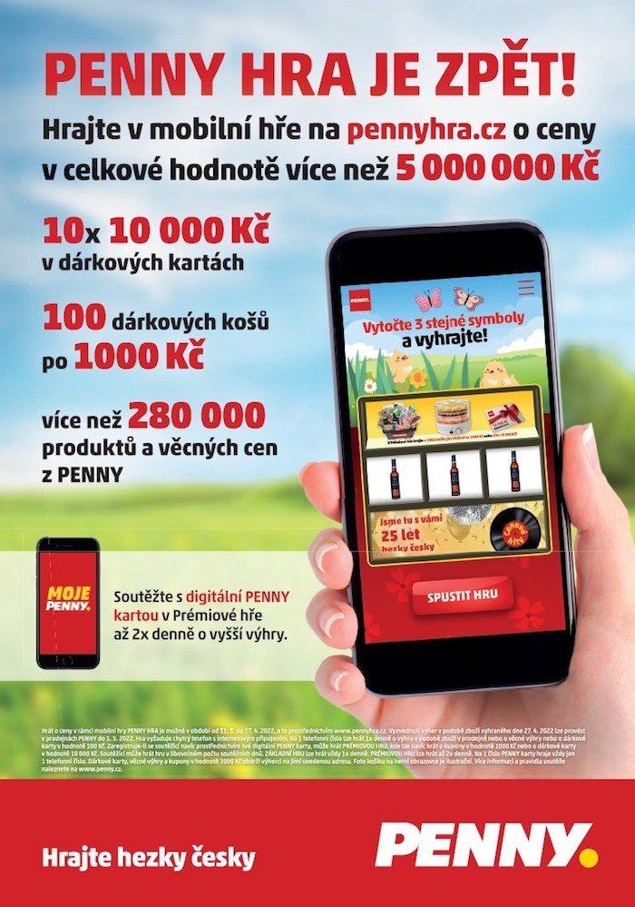 Obchodní řetězec Penny startuje i letos svou věrnostní hru. Od 31. března do 27. dubna bude možné soutěžit o ceny v celkové hodnotě přes pět milionů korun, a to o deset dárkových karet v hodnotě 10 tisíc korun, knížky s kupony v hodnotě tisíc korun a více než 280 tisíc produktů a věcných cen.