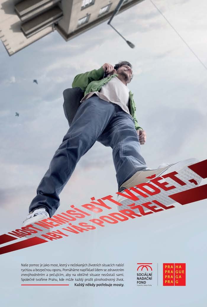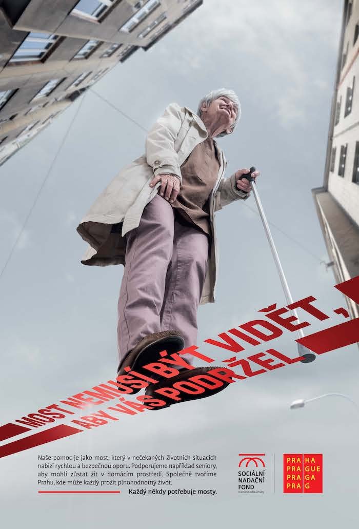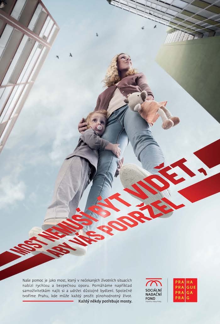 Sociální nadační fond hlavního města Prahy už dva roky zaměřuje svoji podporu na obyvatele města v bytové nouzi, se zdravotním znevýhodněním, pečující i pěstounské rodiny. Nyní ve spolupráci s agenturou Cocoon pod vedením kreativního ředitele Lestera Tulletta a fotografem Pavlem Hejným spouští kampaň #NeviditelneMosty.