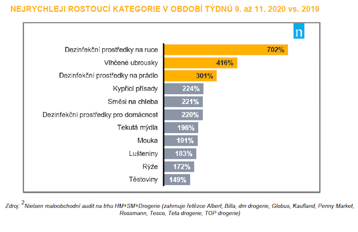 # e-shop # obchodní řetězce # e-commerce # Nielsen # nákupní chování # Koronavirus # online # dezinfekce # dezinfekční gel # trvanlivé potraviny