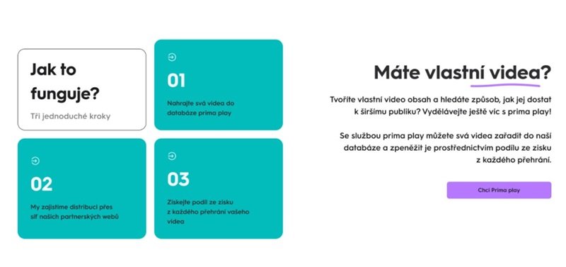 vloží na své stránky, jim Prima zaplatí 30 %. Nový produkt pro prodej