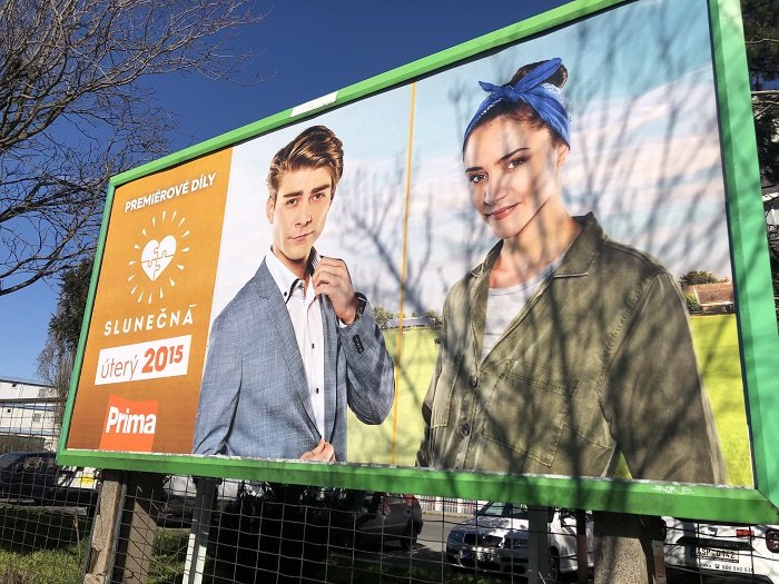 Televize Prima se snaží pomocí bilboardové kampaně zviditelnit fakt, že ve svém vysílání stále ponechává alespoň některé premiérové díly svých pořadů. Konkrétně jde o seriály Modrý kód a Slunečná.