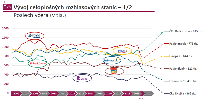 | Rádio Impuls | 1608 | 1664 | -3,4 |