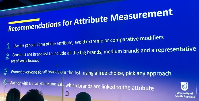 Podle Romaniuk tak nelze mít stejná kritéria a benchmarky pro různé značky. Zavádějící může být také špatné využívání metriky brand awarness (povědomí o značce) a způsoby jejího měření. Sledování „top of mind“ (první na mysli) nemusí nutně znamenat nejlepší výsledek (například nezohlední ty, kteří si značku potenciálně teprve vyhledají). „Všechna měření vycházejí ze stejného paměťového souboru. Když lidem nedáme nápovědu, tak ti, kteří značku nekupují, to mají těžší.“ Svoji roli také hraje způsob kladení dotazů, opět zejména pro „nekupující“. Použití obecné formulace „mám rád/a tuto značku“ přinese jiné výsledky než použití silnějšího hodnocení „tato značka je lepší než ostatní“ a výrazněji se projeví opět u značek, které zákazníci nekupují. Zúžení výběru se pak promítá do následné otázky (priming) a brání tomu, aby si zákazník vyvolal z paměti něco dalšího (inhibice). „To vede ke zkreslenému pohledu na výkon značky, kdy velké značky vypadají lépe a malé naopak hůř,“ uzavřela Jenni Romaniuk.