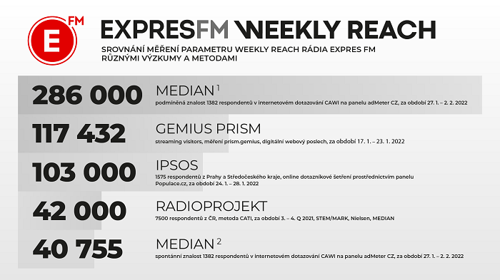 data oficiálního měření poslechovosti Radioprojektu. Tvrdí, že Expres FM