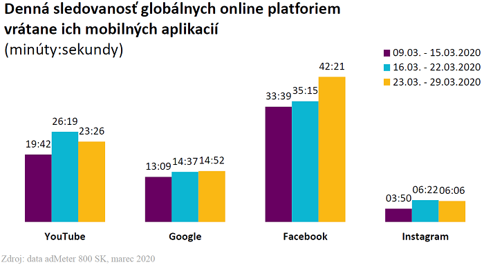 Data vycházejí z měření adMeter, kterého se na Slovensku účastní 800 respondentů. Data byla sbírána v březnu 2020. Tištěná média nejsou součástí měření.