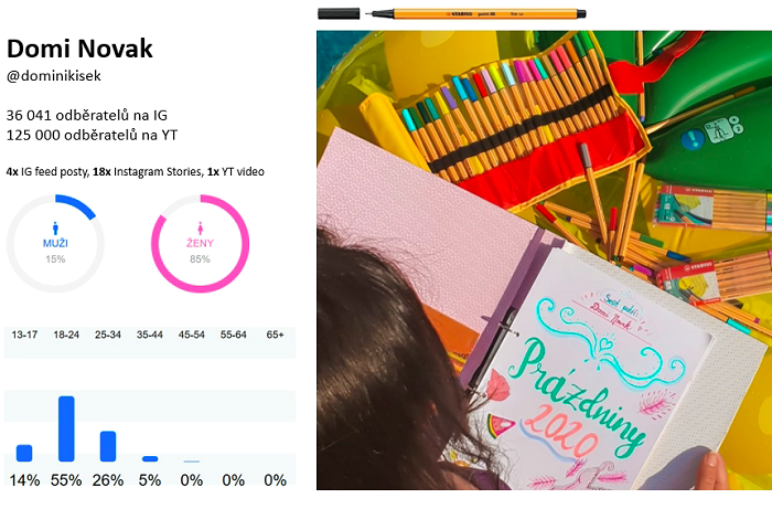 Samotnou Dominiku Novak velká interaktivita publika překvapila. „Nečekala jsem, že do tak specificky zaměřeného videa, tedy tvoření prázdninového Bullet journalu se Stabilo point 88, se zapojí tolik lidí. Desítky fanoušků mi posílaly hodně propracované Bullet journaly, které si podle mě vytvořili, a velká většina si šla skutečně pořídit linery Stabilo point 88,“popisuje Novak.