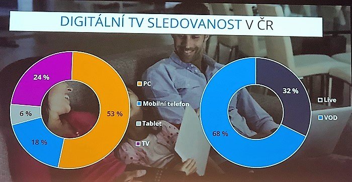 U sledovanosti televizního obsahu na digitálních platformách (PC, mobil, tablet) převažuje na druhou stranu sledovanost na vyžádání (VOD). Podle dat, která na konferenci Forum Media v minulém týdnu prezentovali Tereza Šimečková a Tomáš Hynčica z Nielsen Admospgere, tvoří podíl VOD sledovanosti obsahu v digitálu 68 %, zatímco živá sledovanost jen necelou třetinu (32 %).