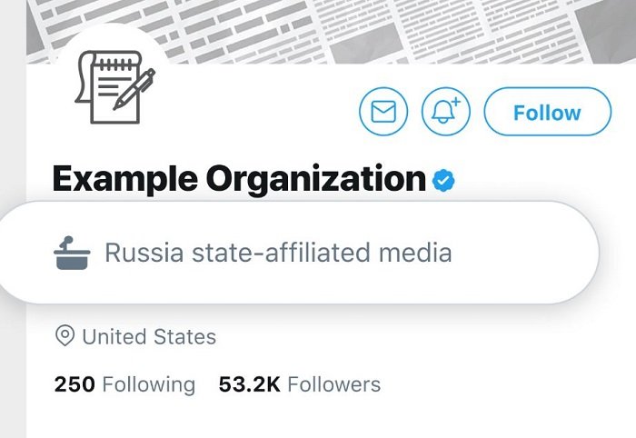 Twitterové profily ruských mediálních agentur RT či Sputnik obsahují novou informaci, a sice že jde o média kontrolovaná státem. Stejné označení nese například čínská stanice s mezinárodním zásahem CCTV. Údaj o vazbách média na stát se zobrazuje hned pod uživatelským jménem. „Snažíme se učinit zážitek z konverzace transparentnější,“ vysvětluje Twitter na svém blogu. Podobným způsobem označuje i profily významných vládních činitelů s tím, že jde o účet představitele vlády.