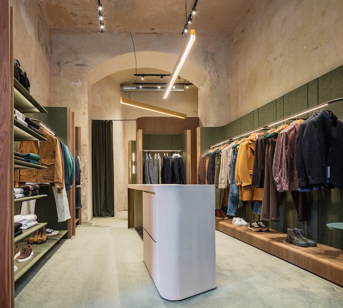 Prostor prodejny o rozloze 460 m2 nabídne zákazníkům oděvy a doplňky téměř všech značek, které společnost na českém, slovenském a maďarském trhu zastupuje, tedy Gant, Karl Lagerfeld, Diesel, Trussardi a další.
