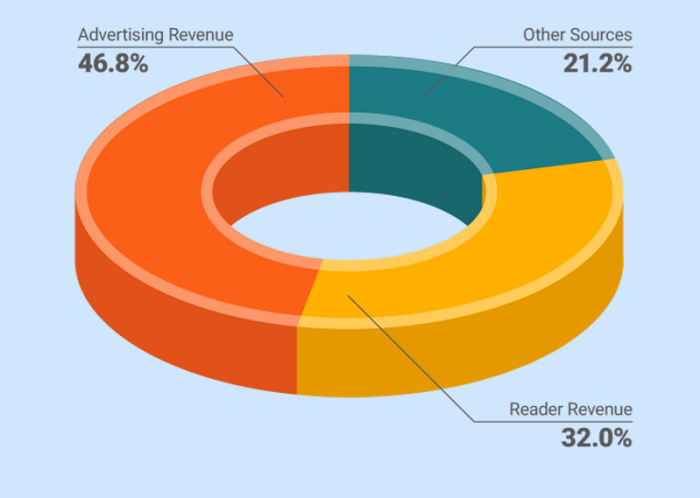 Příjmy z reklamy mají i v příštích dvanácti měsících tvořit téměř polovinu veškerých výnosů (47 %), druhým významným zdrojem zůstávají příjmy od čtenářů (32 %). Už pětina výnosů tak přichází z jiných zdrojů.